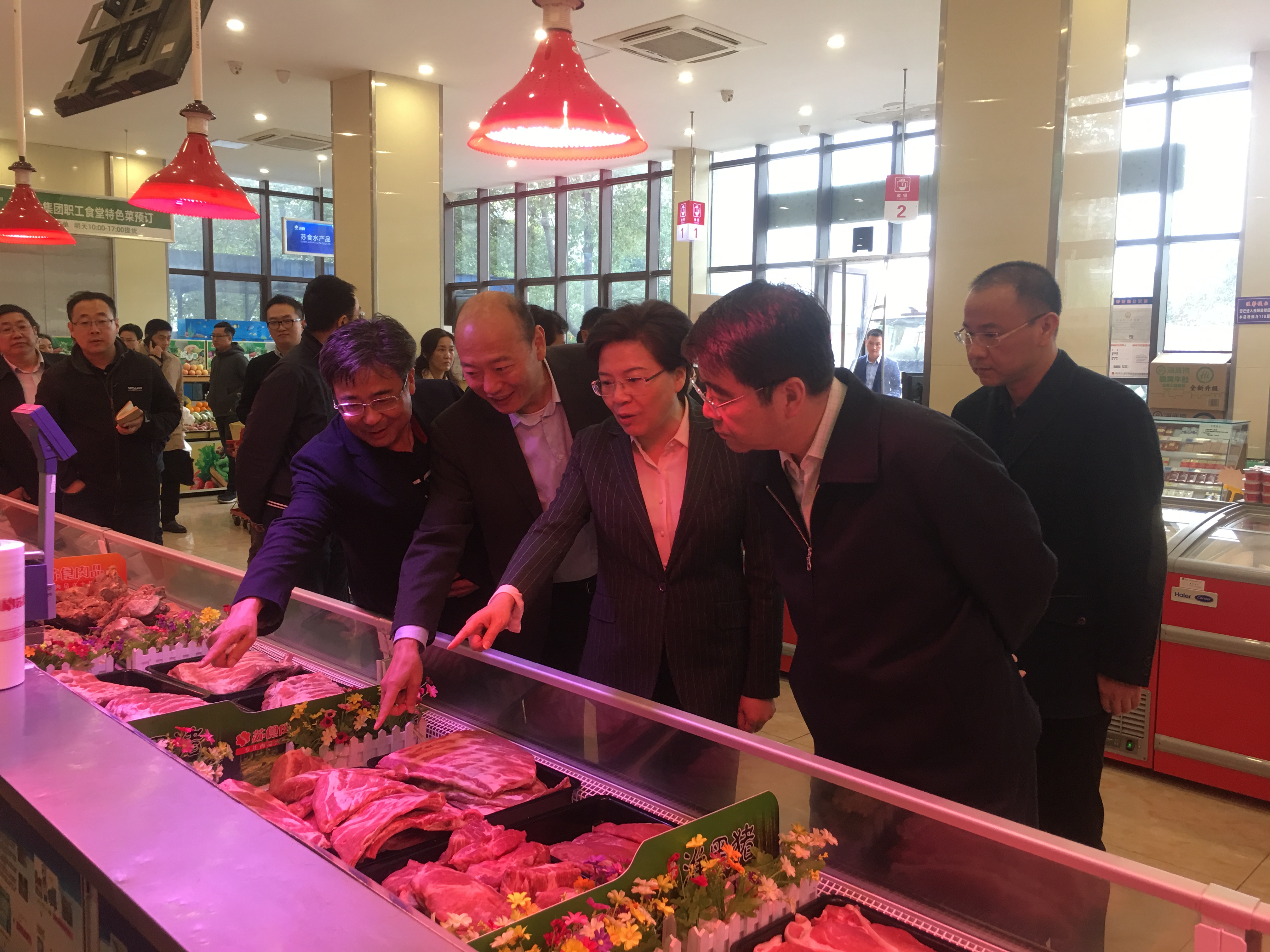 11月13日下午,南京市代市長韓立明率政府檢查組蒞臨蘇食集團檢查豬肉儲備及供銷情況。